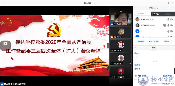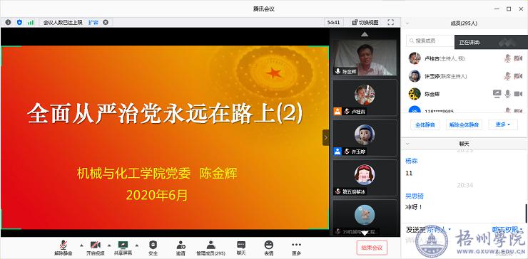 6月17日晚,机械与化工学院党委通过腾讯会议媒体召开全面从严治党工作暨党风廉政建设会议。机械与化工学院全体党员参加会议,非党员领导、入党积极分子等列席会议,会议人数达300人。