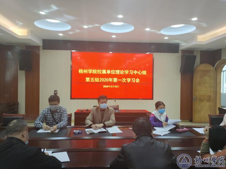 3月18日,校属单位理论学习中心组第五组在明理楼七楼会议室召开2020年第一次学习会。会议由小组组长、机化学院党委书记陈金辉同志主持。机化学院、大数据学院、电信学院负责人参加会议。