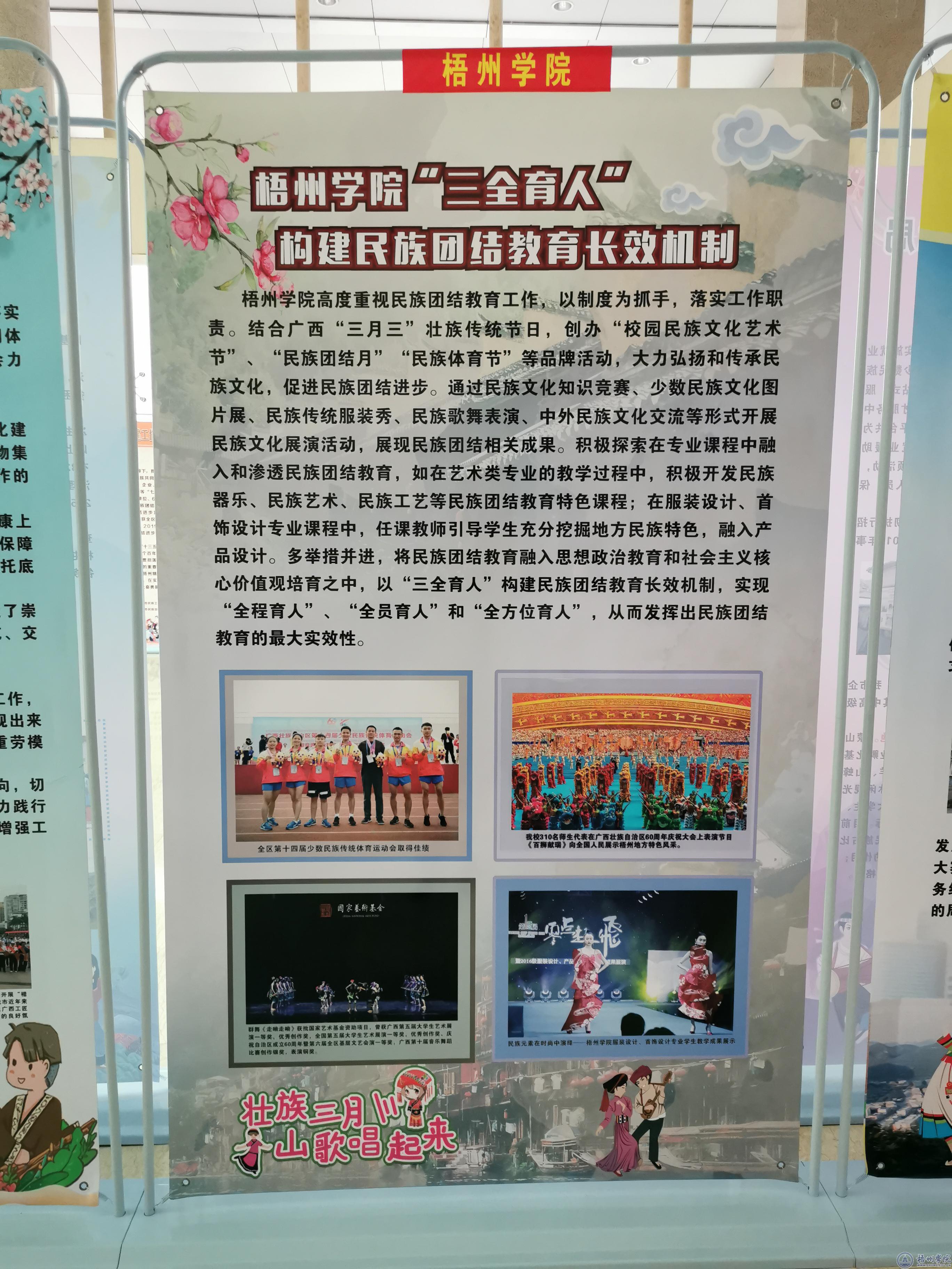 近日,梧州民族团结进步创建工作成果展在市联合办公大楼一楼大厅开展,我校参加了本次成果展。