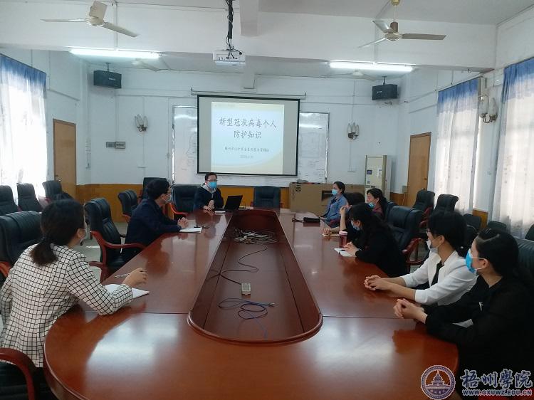 4月16日下午,后勤基建处邀请到市红会医院感染控制科黄卓、黄金玲两位医师为学校医务人员进行新冠肺炎疫情防控相关知识培训。
