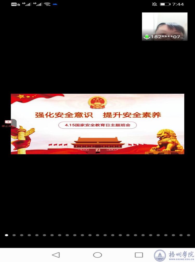 4月15日晚,电子与信息工程学院19电本2班和19电本试点班在腾讯会议APP召开“强化安全意识 提升安全素养”的国家安全教育主题班会。
