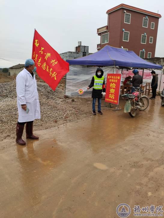 19级视觉传达2班学生蒋兴鑫在家乡桂平做疫情防控志愿服务