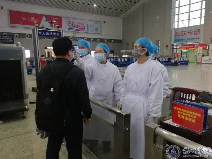 2月13日上午,机化学院积极响应梧州市和学校进一步落实新型冠状病毒感染的肺炎疫情体温检查站联防联控工作通知精神,组织了疫情防控党员服务队员许玉婷、申毅莉、卢水玲3名同志赴梧州南站协助医务人员进行体温检测工作。