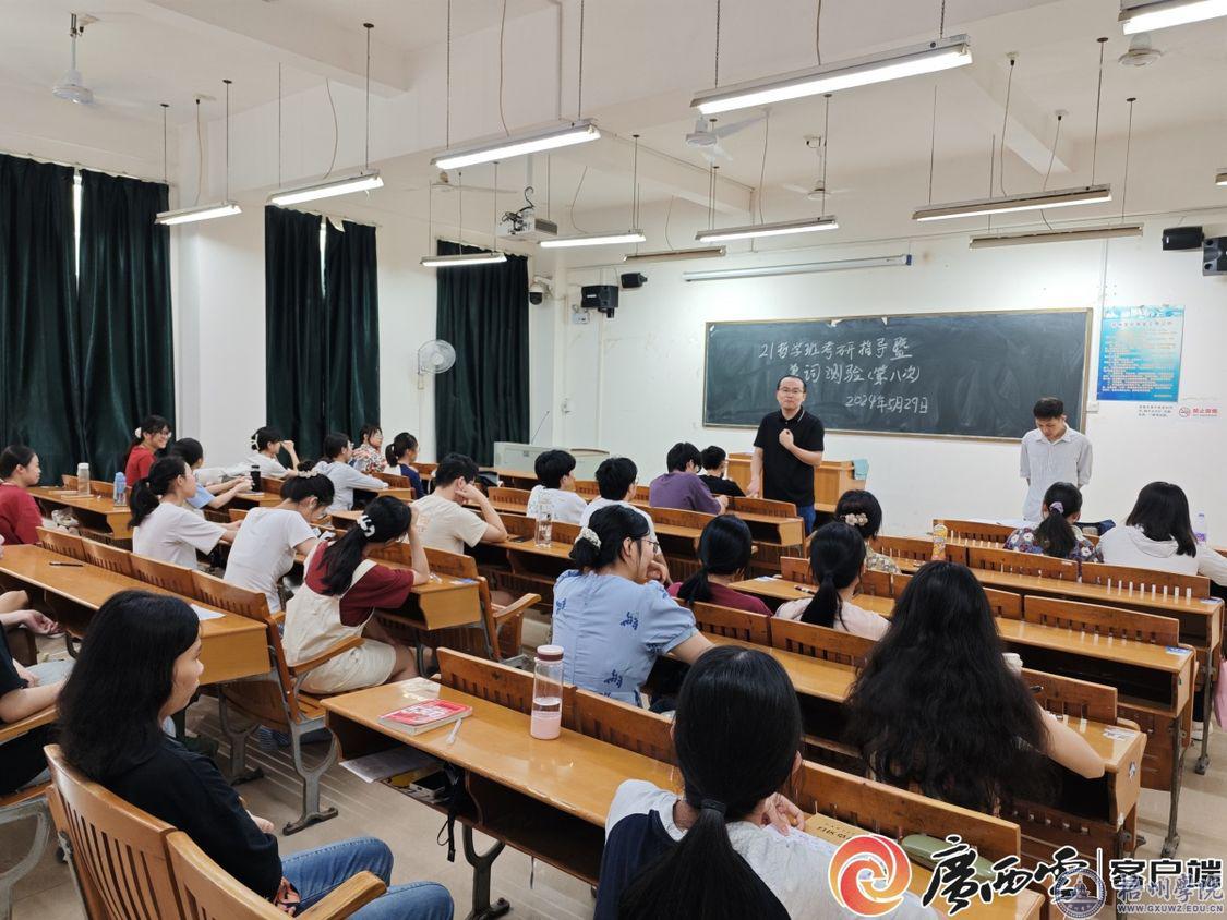 孟夏时节,蝉鸣渐起,校园里却是另一番忙碌图景:图书馆走廊上,身着校服的同学低声背诵;教室里,笔尖与书页摩挲作响,映照出一群年轻人对知识的执着与热爱。这正是梧州学院文学与传媒学院2021级哲学班考研备战的真实写照。