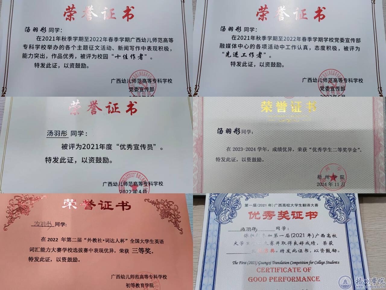 汤羽彤专科至今部分获奖情况