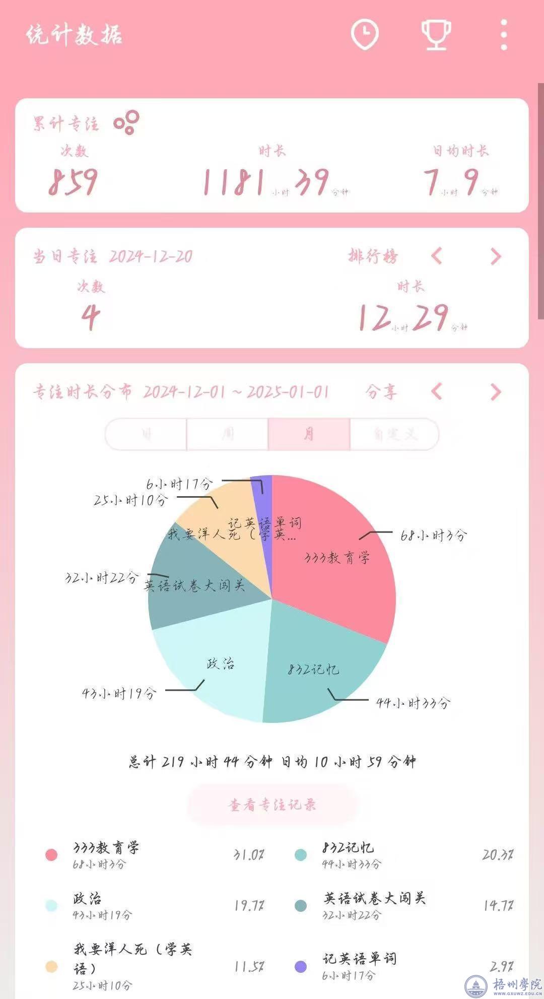 张绮君备考期间的部分学习数据统计