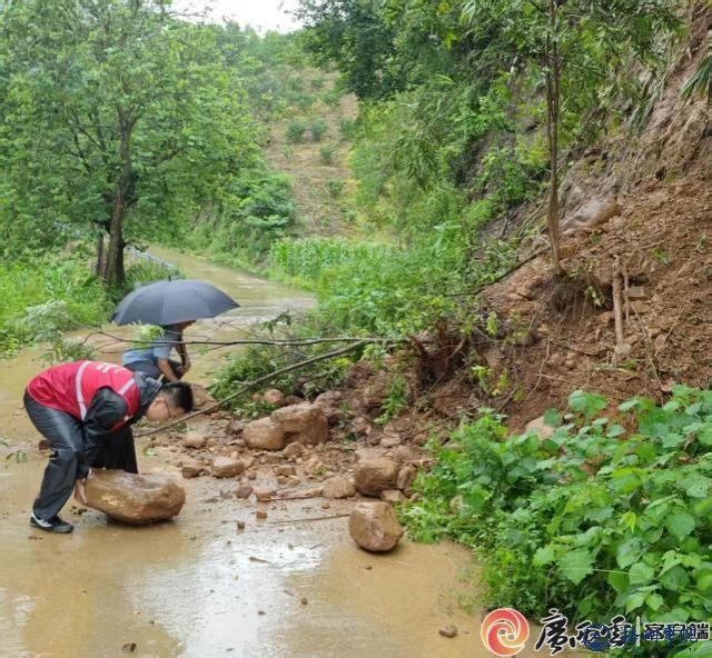 六桂村驻村第一书记徐超处置道路塌方、疏通堵水管道。校方供图