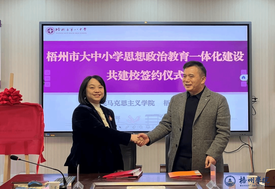 校地协同、校校合作,让思政教育覆盖全域。学院与全市46所大中小学建成思想政治教育一体化共建校,实现资源共享、教学共研、师资共育、成果共用。结合梧州地方教育布局特点,创新构建“市—县(市、区)—乡(镇)—村”四级协同育人模式,打通城乡思政教育壁垒,推动优质思政资源向基层、乡村下沉,实现市域大中小学思政教育全覆盖。