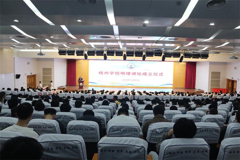 杨奔校长致辞。他表示,学术讲坛作为学术交流和文化传承的重要平台,对于提升学术氛围、拓宽师生视野、促进学科交叉融合等方面发挥着重要作用。学校历来重视学术讲坛的建设,并在学术交流方面取得了一定成绩。他详细讲解了“明理”的寓意,指出成立“明理讲坛”意义非凡,将为学生提供与大师对话的机会,激发师生创新思维,培养解决问题能力,营造良好学术氛围。未来,梧州学院将继续加大对学术讲坛的建设和支持,为师生提供更广阔的学术交流平台,为学校的高质量发展注入新的活力。