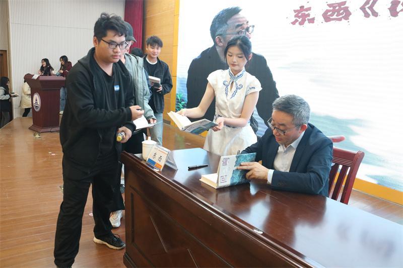 讲座结束后,东西老师为在场师生签名赠书。现场气氛热烈,参加人员纷纷有序排队等待签名。