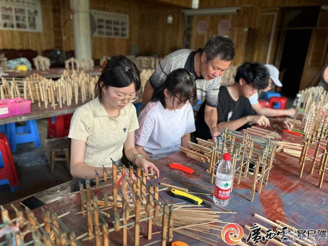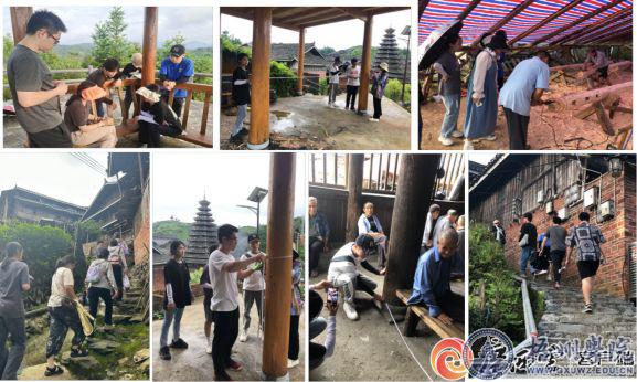 学生跟随非遗传承人实地研习侗族木构技法,记录“不用一钉一铆”的传统营造智慧。