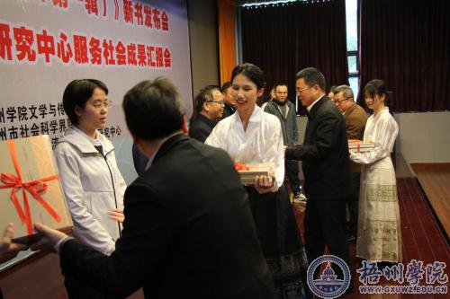 随后,杨奔校长、黄恩部长共同向梧州学院图书馆、梧州市档案馆、梧州市志办、梧州市博物馆、梧州市图书馆、梧州市社科普及基地、苍梧县文物管理所、岑溪市文物管理所八个单位赠送了图书。