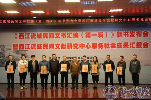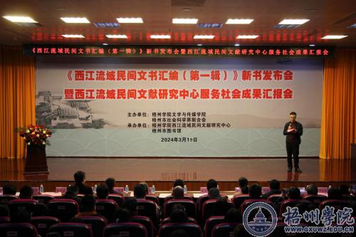 3月19日,由梧州学院文学与传媒学院、梧州市社会科学界联合会共同主办,梧州学院西江流域民间文献研究中心与梧州市图书馆联合承办的《西江流域民间文书汇编(第一辑)》新书发布会暨西江流域民间文献研究中心服务社会成果汇报会在梧州市图书馆举行。梧州学院校长、西江流域民间文献研究中心主任杨奔,梧州市委常委、宣传部部长黄恩出席发布会,并分别作讲话。
