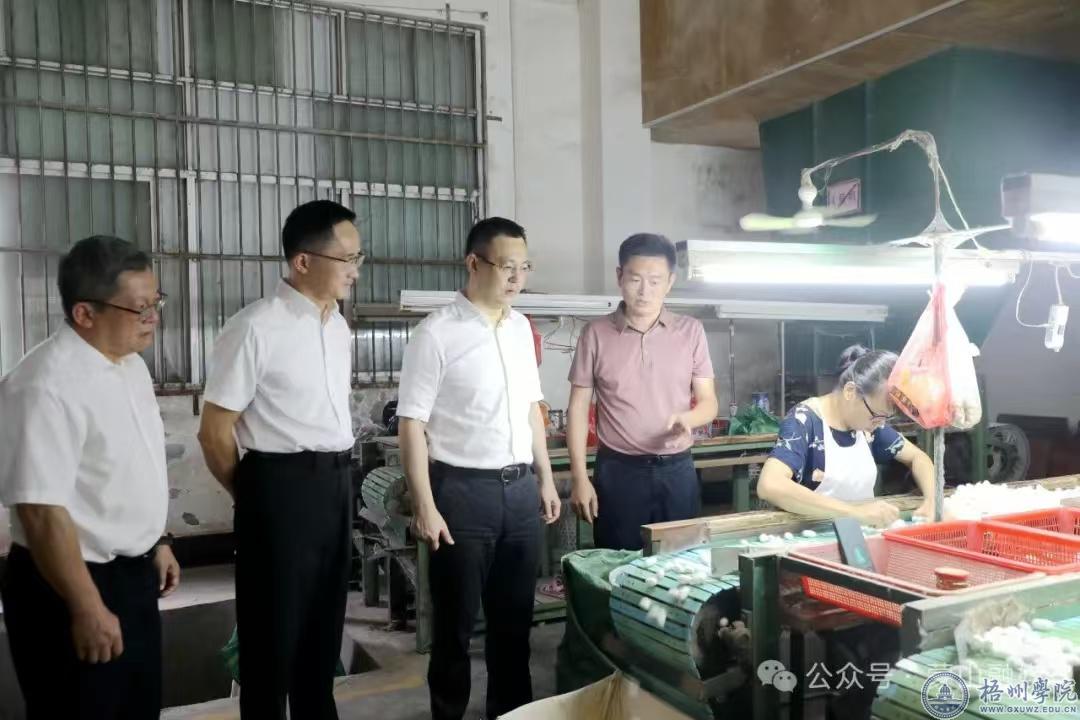 签约结束后,梧州学院一行分别前往广西华虹蚕丝股份有限公司、蒙山县丝艺文化中心、广西堡鸿茶业有限公司、新圩镇标准化桑蚕基地,就蒙山县茧丝绸产业发展、丝艺文化中心建设发展、六堡茶加工项目建设以及桑蚕养殖等情况进行调研。