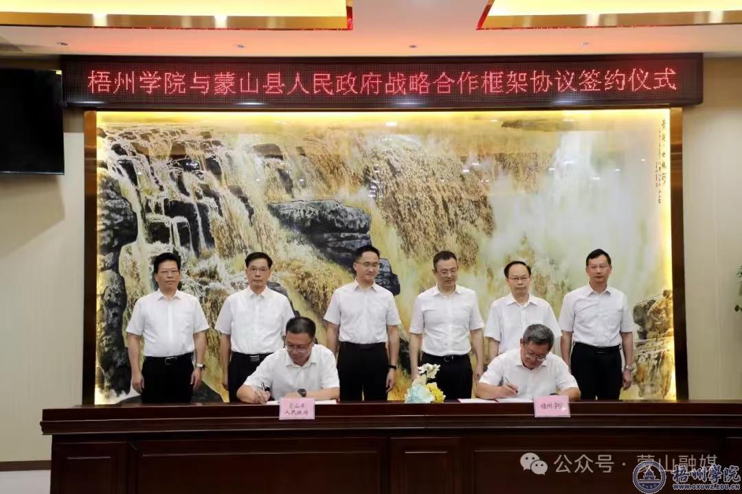 随后,县委副书记、县长陈坚与梧州学院党委副书记、校长杨奔分别代表蒙山县人民政府和梧州学院签订了战略合作框架协议。