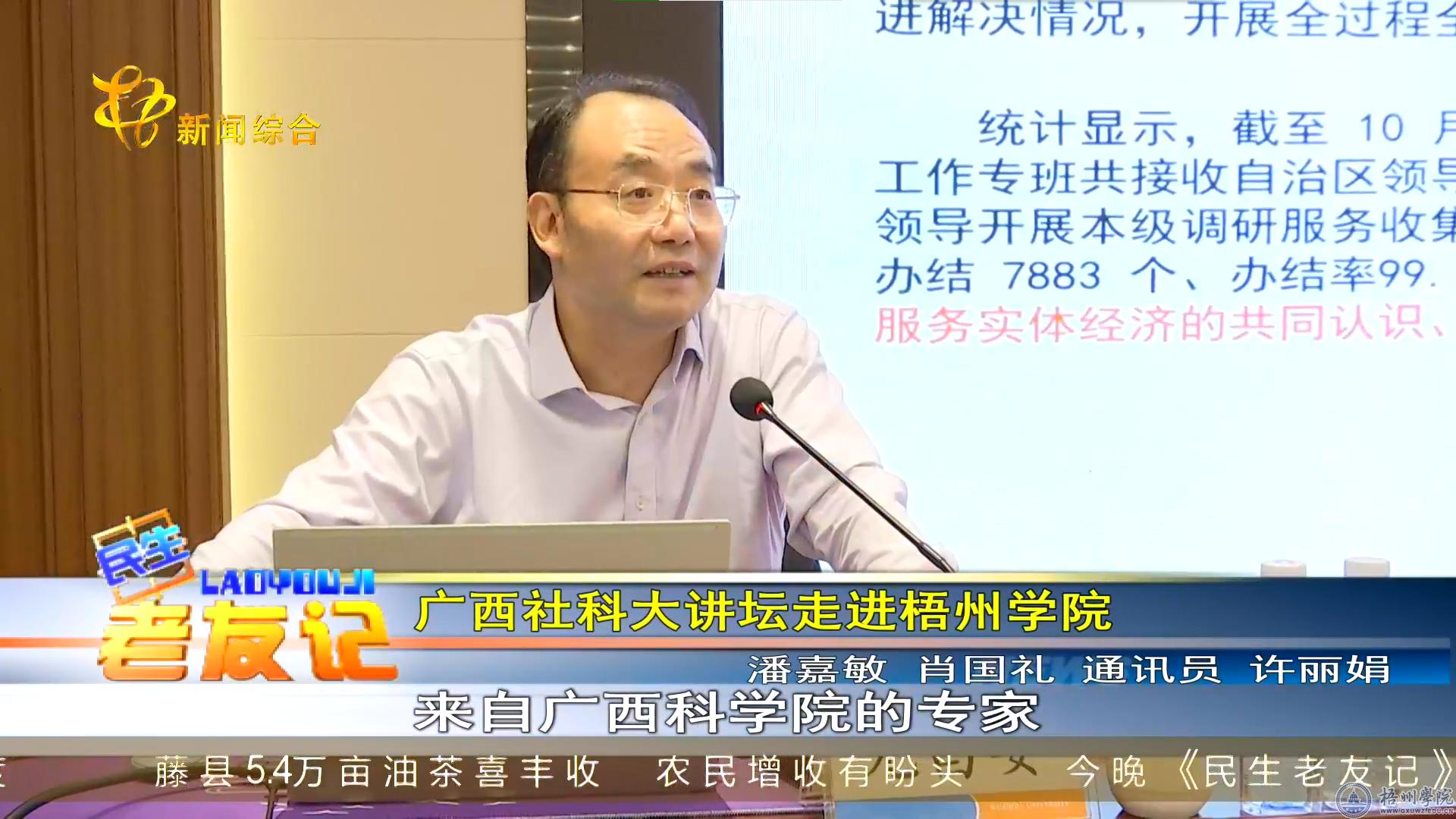 日前,由广西壮族自治区社会科学界联合会主办,广西非公有制经济发展研究会联合梧州学院承办的2023年广西社科大讲坛走进梧州宣讲报告会在梧州学院举行。