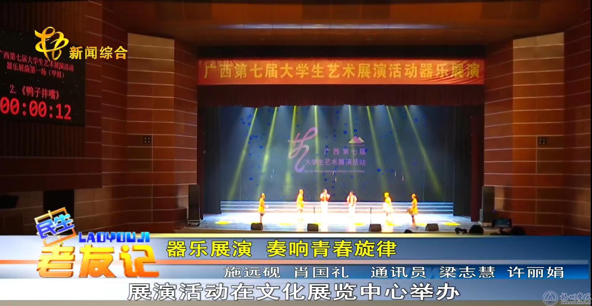 展演活动在文化展览中心举办,2天时间里41个作品同台竞演。昨晚进行的是甲组的展演,包含11个集体项目和7个个人项目,汇聚了广西大学、广西民族师范学院、贺州学院及梧州学院等多个大学院校的优秀选手。
