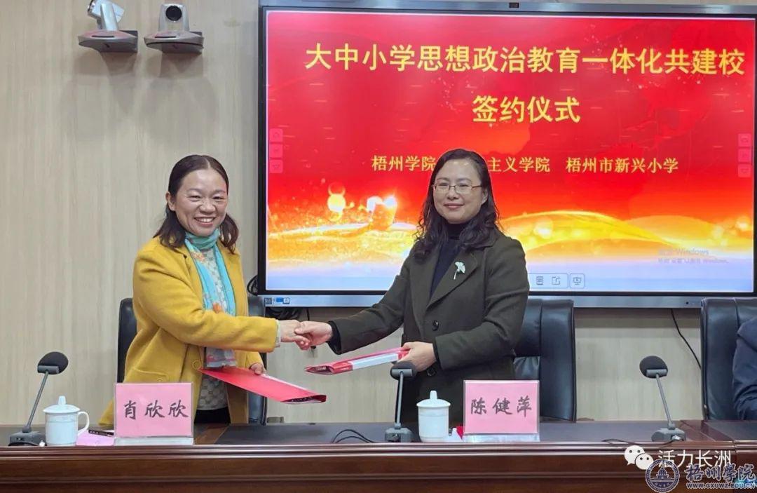梧州学院马克思主义学院与梧州市新兴小学签订共建协议、举行授牌仪式