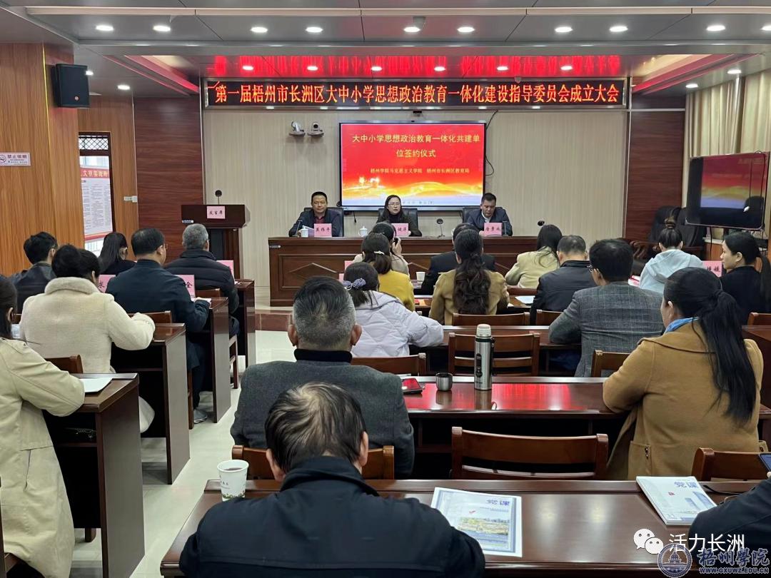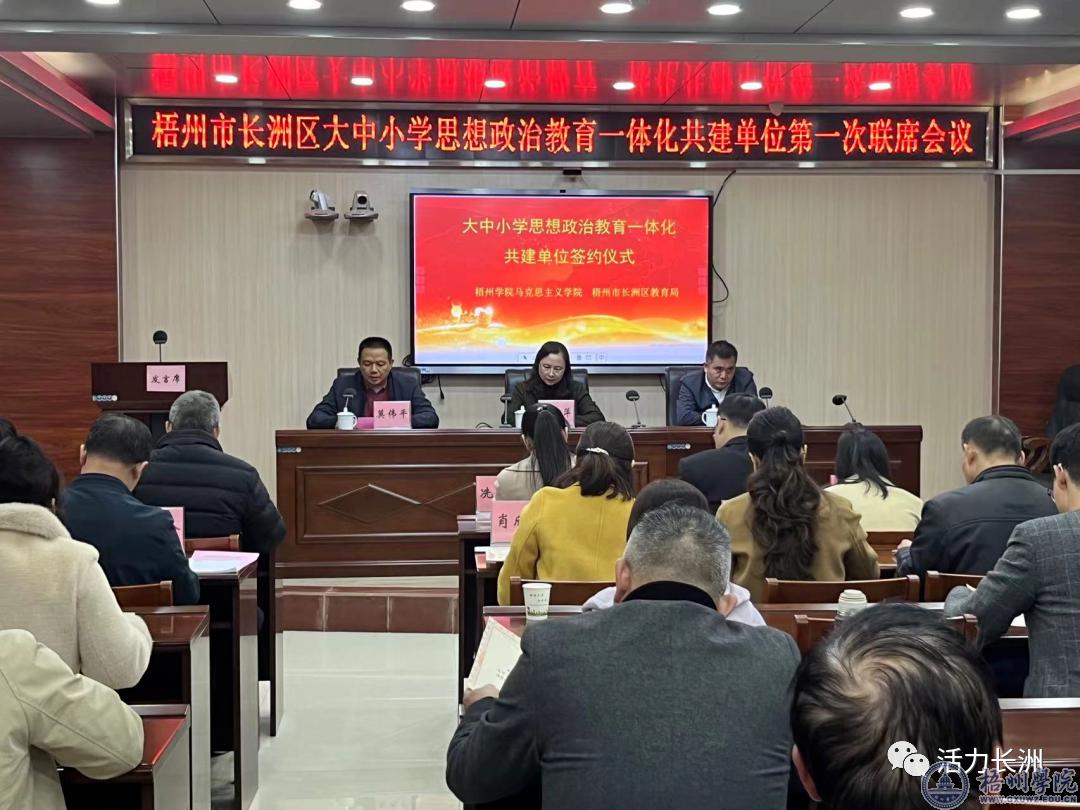 签约揭牌仪式结束后,在长洲区教育局六楼会议室还召开梧州市长洲区大中小学思想政治教育一体化共建单位第一次联席会议。