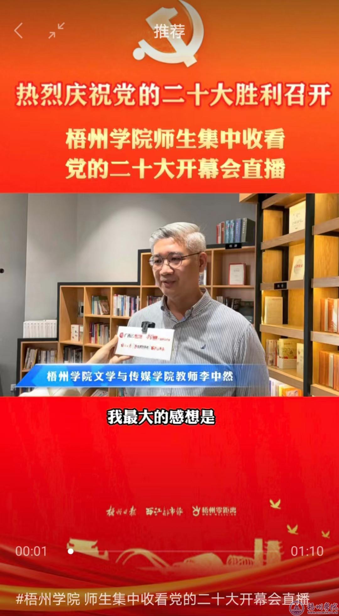 梧州学院教职工和学生集中收看党的二十大开幕会直播
