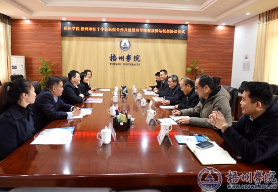 2月16日上午,梧州学院与梧州红十字会医院共建健康驿站框架协议签约仪式在梧州学院明理楼八楼第二会议室举行。梧州红十字会医院院长余永铭、党委专职副书记刘凤玲、副院长郑裕明、副院长李皓,梧州学院校长杨奔、副校长玉振明、副校长范生汝出席签约仪式。签约仪式由梧州学院副校长玉振明主持。