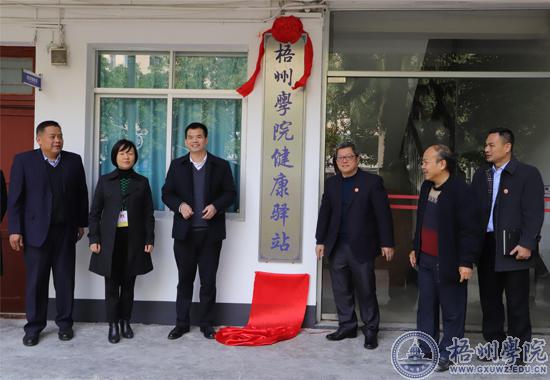 杨奔、余永铭代表校院双方进行签约。签约仪式结束后,校院双方前往A3学生宿舍楼实地参观了解梧州学院健康驿站的建设情况。杨奔、余永铭共同为梧州学院健康驿站揭牌。