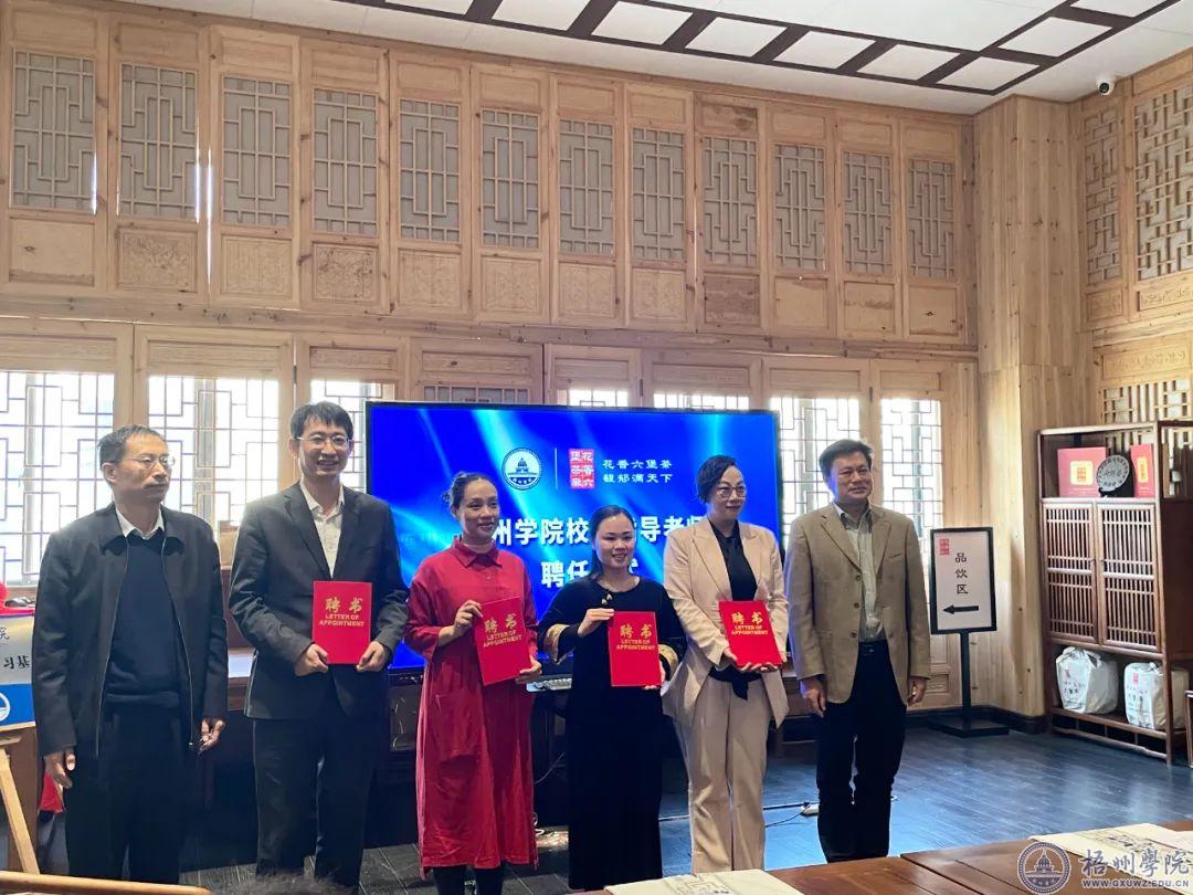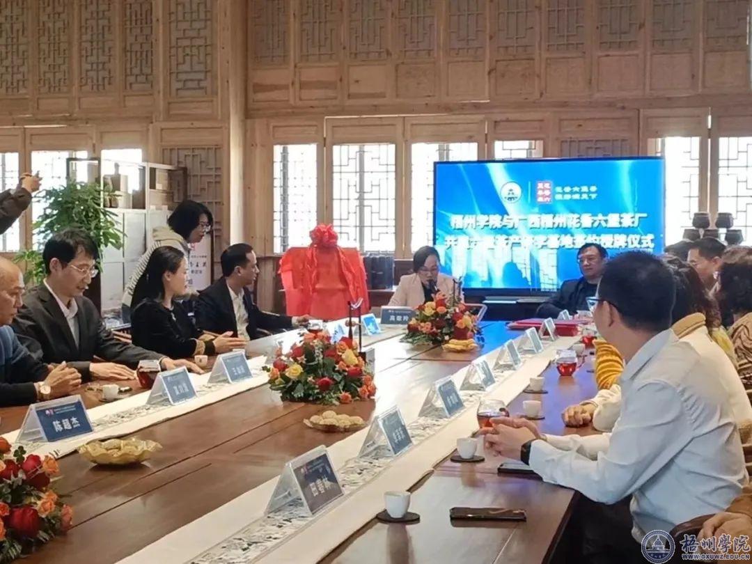 随后,梧州学院和广西梧州花香六堡茶厂举行共建六堡茶产研学基地签约授牌仪式,并为特聘校外指导老师颁发聘书。