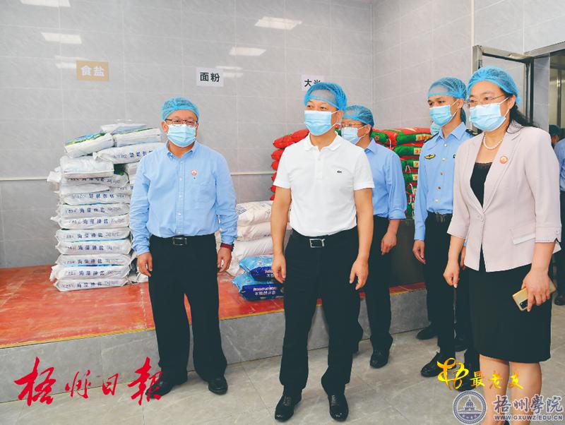 4月14日,市委书记蒋连生到梧州学院,就一流学科和重点实验室建设、广西人文社科重点研究基地等工作进行调研。蒋连生还来到梧州学院第五食堂,现场督导检查梧州学院食品安全责任落实情况。李鸿荣 摄