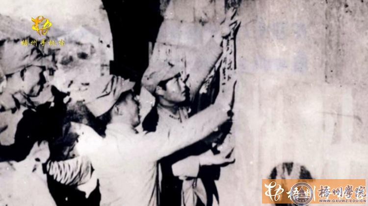 梧州学院党委宣传部副部长、教授唐景成:“在这场游行中,梧州当局害怕抗日运动发展,强令解散游行队伍。在广西大学支部的组织下,学生代表们不卑不亢,与警察说理斗争,高唱抗日救亡歌曲,高呼‘停止内战,团结抗日’‘和平解决西安事变’的口号,梧州的进步团体救国话剧社、民众唱歌团、宵征社等也加入其中。”