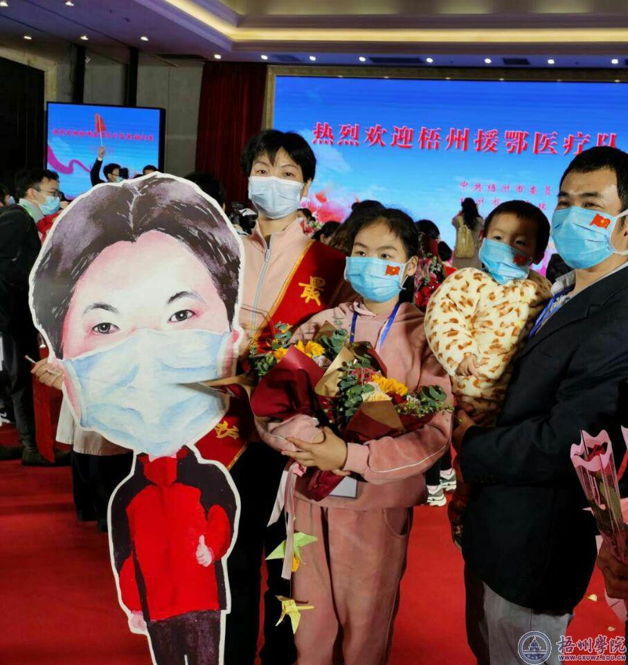 4月5日下午13:30许,梧州援鄂医疗队凯旋,蓝必铁终于见到了久别的妻子。那天,大女儿亲手叠了6只千纸鹤送给妈妈,分离两个多月,他们一家人终于团圆了。