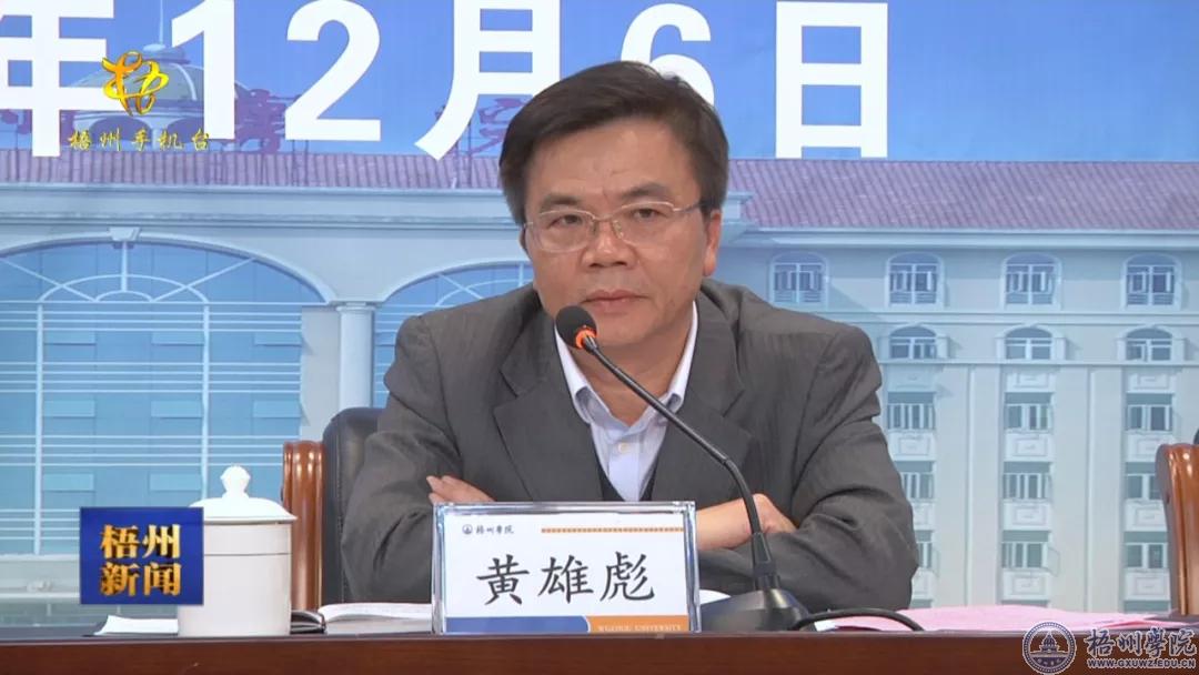 市委常委、宣传部部长、副市长黄振饶,梧州学院党委书记唐平秋,梧州学院党委副书记、院长杨奔参加会议。