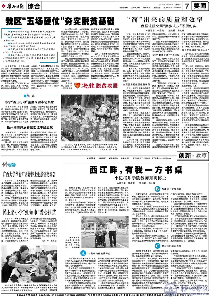 梧州教育资源匮乏,郑明有时候会感受到一种学术上的孤独。“既然梧州学院选择了我,我就不能让学校失望。”郑明说。