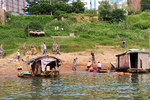 5月17日17时许,缪振鑫与李辉帅参加万秀区人民武装部组织的民兵应急连在桂江二桥东桥头附近水域开展防汛抗洪演练。休息期间,他们看见距离岸边10多米的水面上有1艘小渔船,船上1名女子与男子争吵,女子情绪激动,不停哭泣。这个场景让他们隐约感觉到不妙。突然,女子转身跳入江中并不断挣扎!