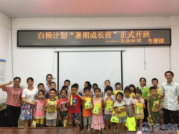据了解,开办暑期公益培训班,只是梧州市社区志愿服务“白杨计划”公益项目举办志愿活动的一个缩影。该项目自2014年启动,由梧州市精神文明办指导,梧州学院“白杨计划”团队主办,已经先后在华洋、富安等社区,以及北环路小学、大坡镇中心小学开展志愿服务,受到孩子和家长的认可。