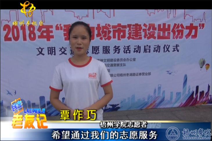 梧州电视台2018年7月14日《民生老友记》栏目报道了在我校举行的“我为城市建设出份力”文明交通志愿活动启动仪式。