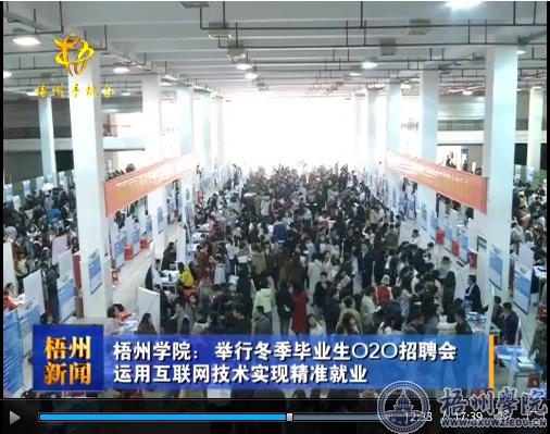 12月17日,梧州电视台晚间《梧州新闻》栏目对我校举办冬季毕业生O2O招聘会作了报道。
