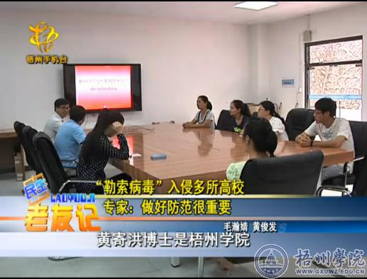 梧州电视台2017年5月15日以《]“勒索病毒“入侵高校 专家:做好防范工作很重要》为题,采访报道了我校现教中心副主任黄寄洪博士。在新闻的0‘55’‘处,链接如下:
