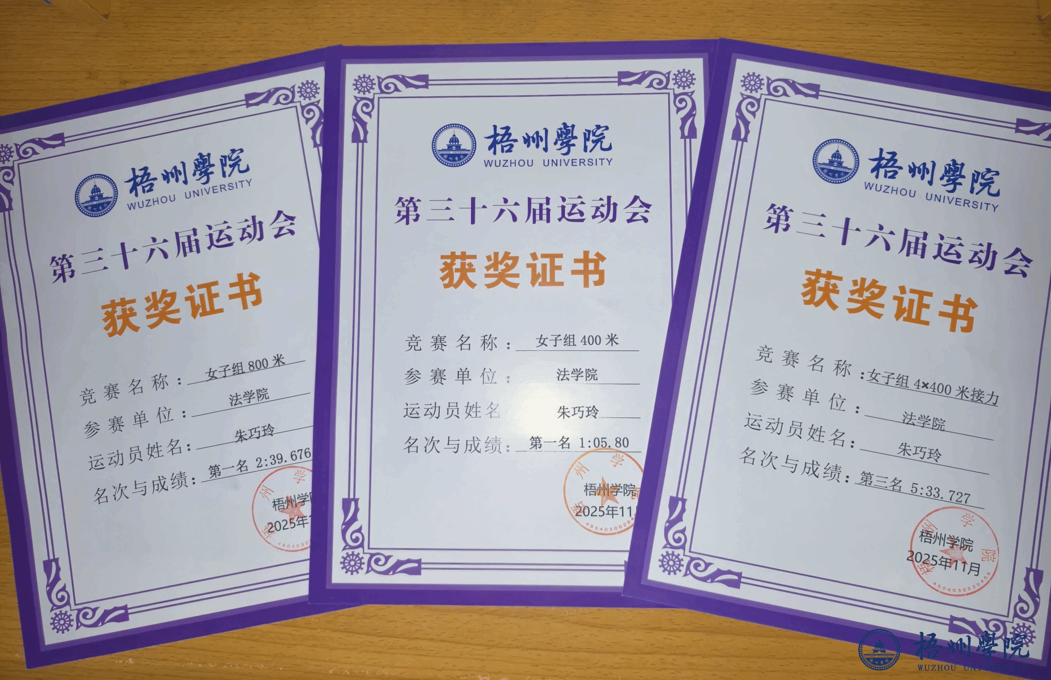 赛场上的辉煌,离不开日复一日的艰辛付出。对于非体育专业的朱巧玲而言,这份坚守更显不易。她始终将学业放在首位,课堂上专注学习主修专业知识,课后则利用课余时间全力投入训练,在时间管理上,她摸索出了专属“秘诀”——“学业为先,合理规划学习、训练与生活的时间,形成稳定的规律”,这份在奔跑中锤炼出的自律,也让她在学业上稳步前行。