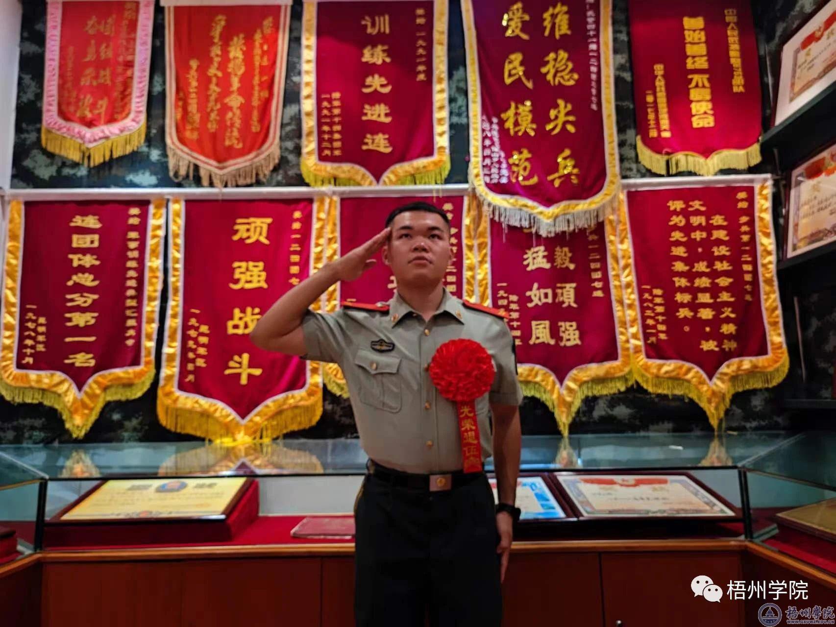 挥别校园,拥抱军营,青春的热血在胸腔中奔腾。红色青春,犹如熊熊燃烧的火焰,又似初升的太阳,他渴望为这青春画卷挥洒出最浓墨重彩的一笔。抬头仰望,红旗猎猎,身着军装,家国与信仰交织,这便是我校食品与制药工程学院2023级制药工程2班李智那饱含深情的两年军旅生涯。短短两年,历经磨砺,将他化作铁骨铮铮的军人。