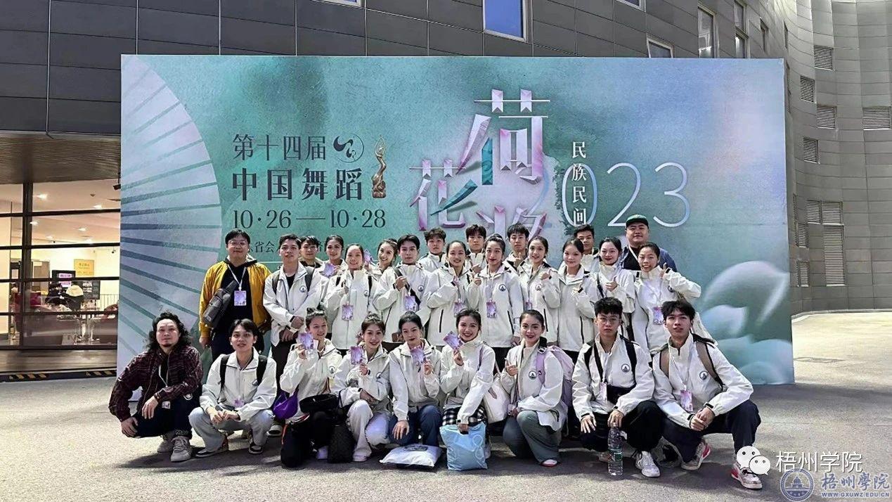 10月27日晚,舞蹈《长鼓悠悠》登上“荷花奖”舞台,在山东省大剧院精彩上演,舞者们借着手中的长鼓,伴随着激昂的节奏,舞台上弥漫着一种磅礴的气势,仿佛穿越时空,将观众带入了广西民族的独特世界,演出获得圆满成功。“那天他们比赛下来之后,很多同学都激动得哭了。我认为这是同学们最精彩的一场表演,他们都是最棒的!”指导老师王玉钰回忆起比赛当日的情景依然十分感动。她道出了《长鼓悠悠》团队的出发点:不只是对于顶尖舞台的冲刺,更是抱着一种学习的心态,接触更多优秀舞者。对舞者来说,经过这样一个磨练的过程,无论排练、演出,他们都会有更多的忍耐力,以及更强的目标性。“看到很多中国顶尖舞者,更被他们的专业精神打动到,还被很多优秀作品的现场震撼到。”队长王凯颇有感触:从群星奖的遗憾到现在如愿以偿登上“荷花奖”舞台,也算是‘带着过往的遗憾前进’,迎接了新的挑战,没有辜负学长学姐的悉心教导。“所以在舞台上就尽情地表达自己吧!”