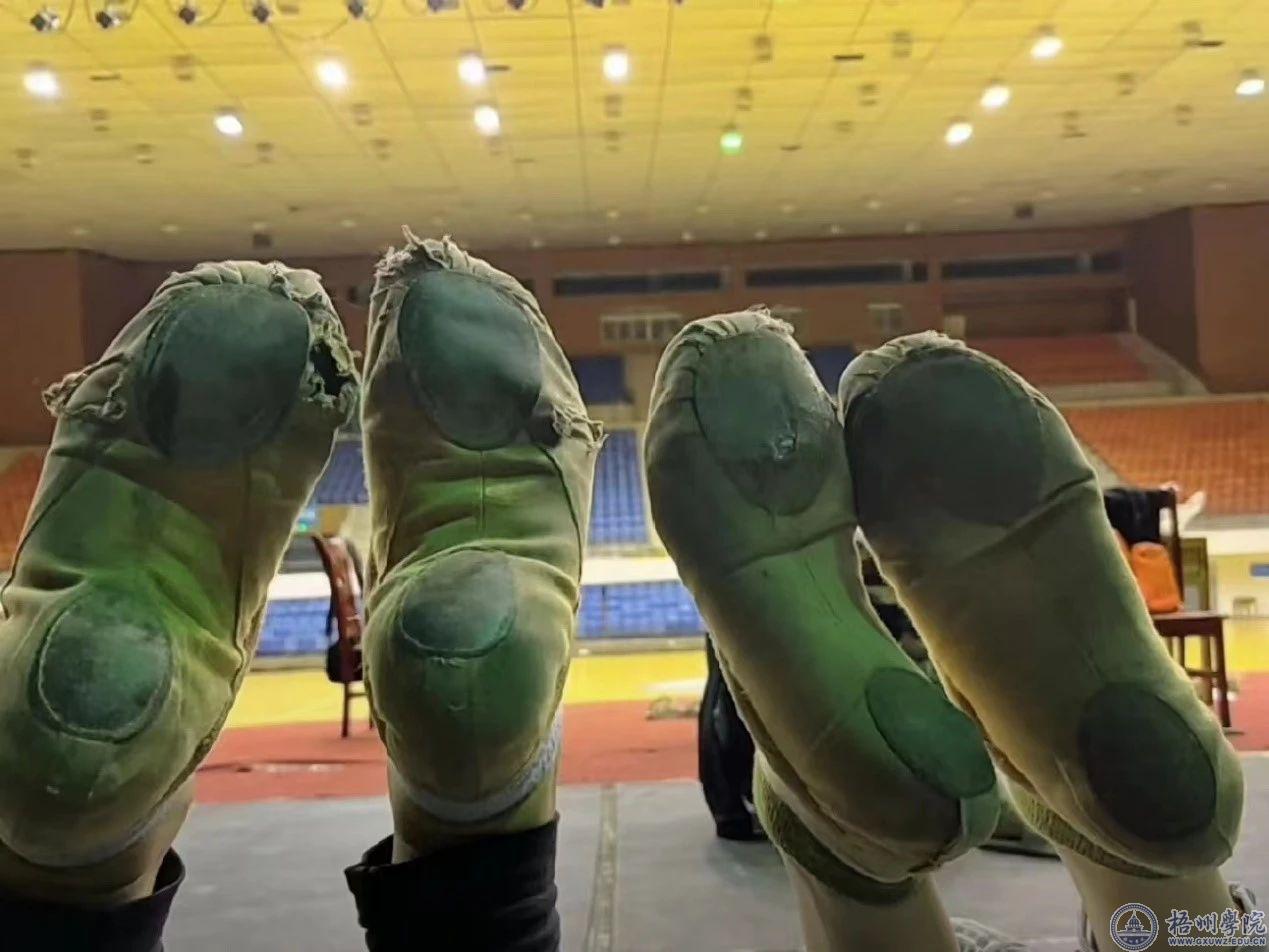 成为《长鼓悠悠》团队的一份子,接过舞蹈的接力棒,便要肩负起团队的责任,投身艰苦而枯燥的训练中去。“为了让动作达到质感,枯燥是难免的。”舞蹈队平时通常在每个工作日的下午五点半至七点集中训练,自八月份接到“荷花奖”比赛的通知、九月份开学以来,尤其是大赛前一个月,即九月末往后,团队开启了“三班倒”模式,早中晚全天训练,中秋国庆假期更是毫不松懈。团队的基础训练包括基本功、体能、身法身韵等等,“《长鼓悠悠》这支舞蹈中很多动作都是依靠腿部肌肉发力,更要通过针对性的训练帮助学生找到自己的发力点。”在老师王玉钰的指导下,学生们刻苦练功,不断纠正动作、队形。