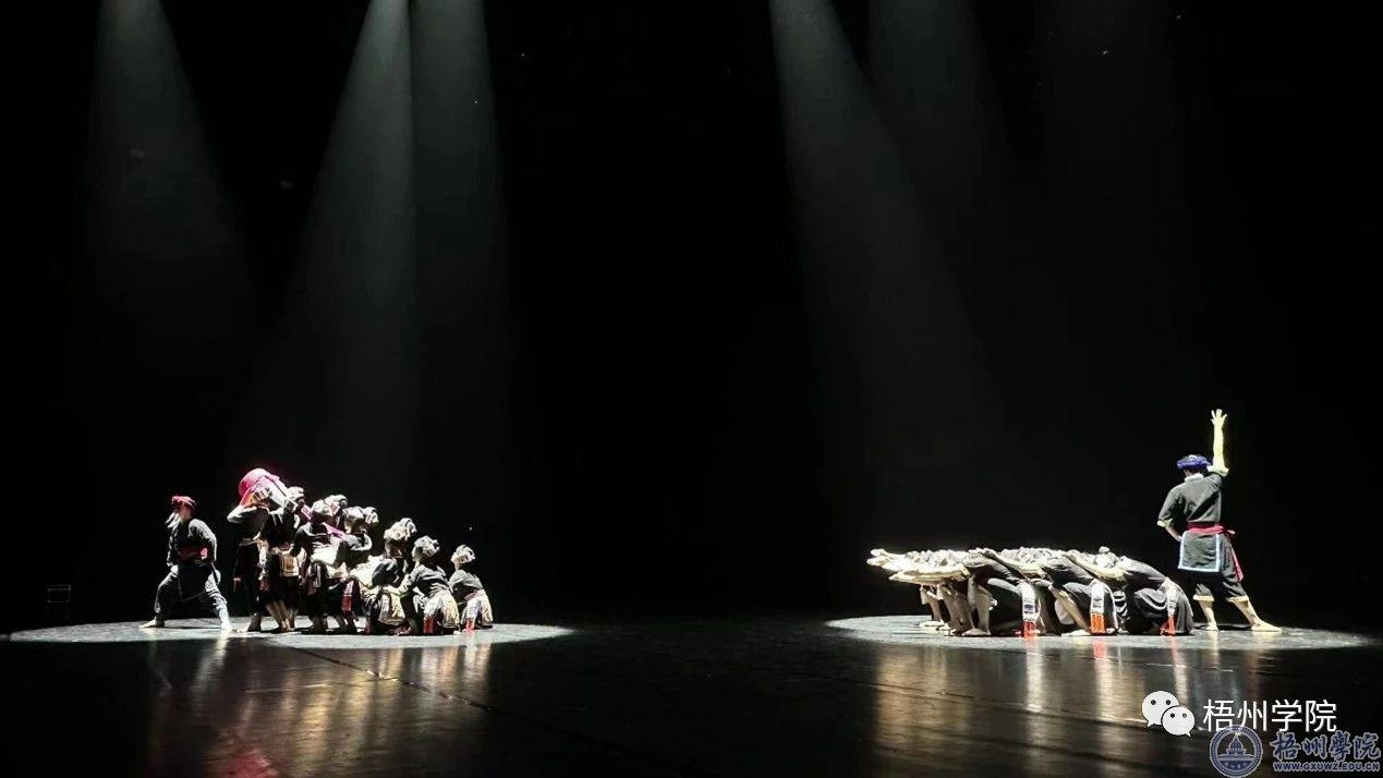 舞台之上,乐声悠长,激发着生命的律动。《长鼓悠悠》不仅是一场视觉盛宴,更是一种心灵的触动。它通过优美的舞姿和动人的音乐,唤起了观众内心深处对传统文化的思考与感悟。“文化是一种力量,一种积淀,也是人类进步的源泉。”《长鼓悠悠》所传递出的力量和积淀,正是梧州学院舞蹈团队成员们对民族文化的深深热爱和责任担当:是舞蹈故事里长鼓文化的传承,也是舞蹈团队里舞者接力的传承。