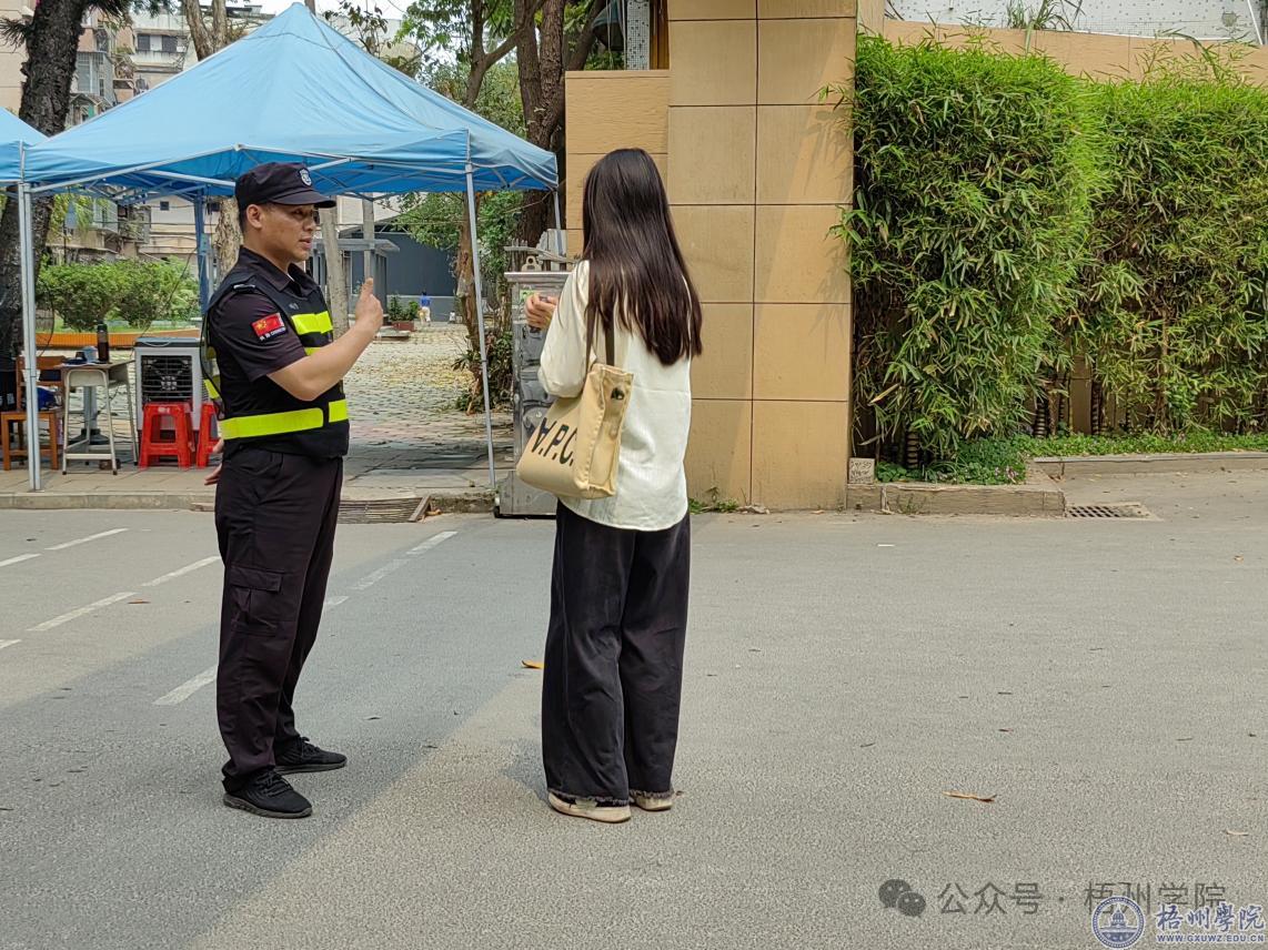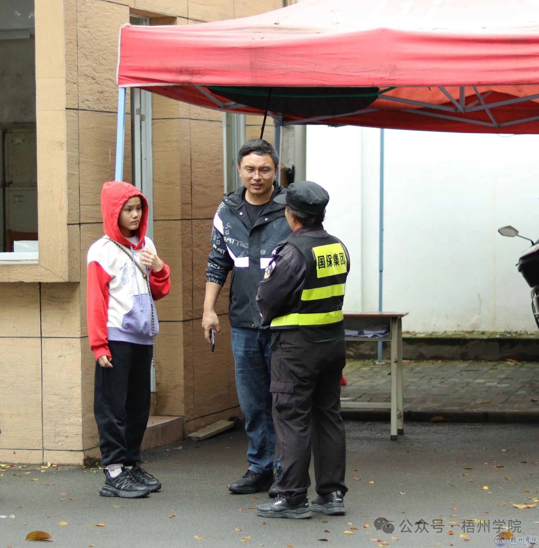 作为校园的一名安保人员,学会观察是必修课。他们时刻认真观察学校南门附近情况,注意发现可疑人、事、物和其他治安情况,以确保校园的安全,也会对每一个需要帮助的师生以及校外人士施以援手。曾在去年九月,一名来自北方的新生因天气炎热刚下车就中暑晕倒在南门门口,潘红梅和杭发明发现后,立即冲上前查看情况,及时通知医务室,并贴心的为这名同学撑遮阳伞、扇风解暑。