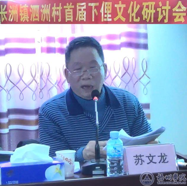 苏文龙曾任梧州市历史文化研究会副会长、现任名誉会长,出版了史学专著《泗化洲古代史》《下俚歌史话》。2003年,苏文龙开始为《泗化洲古代史》做准备,2015年正式动笔,2018年6月初稿完成,由云南民族出版社出版发行。为梧州学院西江流域商贸文化博物馆的建立提供材料参考,推动泗化洲成为历史文化名村,为下俚歌申报国家级非物质文化遗产提供重要的支撑材料。10多年来,苏文龙首倡的下俚文化节每年元宵节如期举行,下俚文化得以延续。