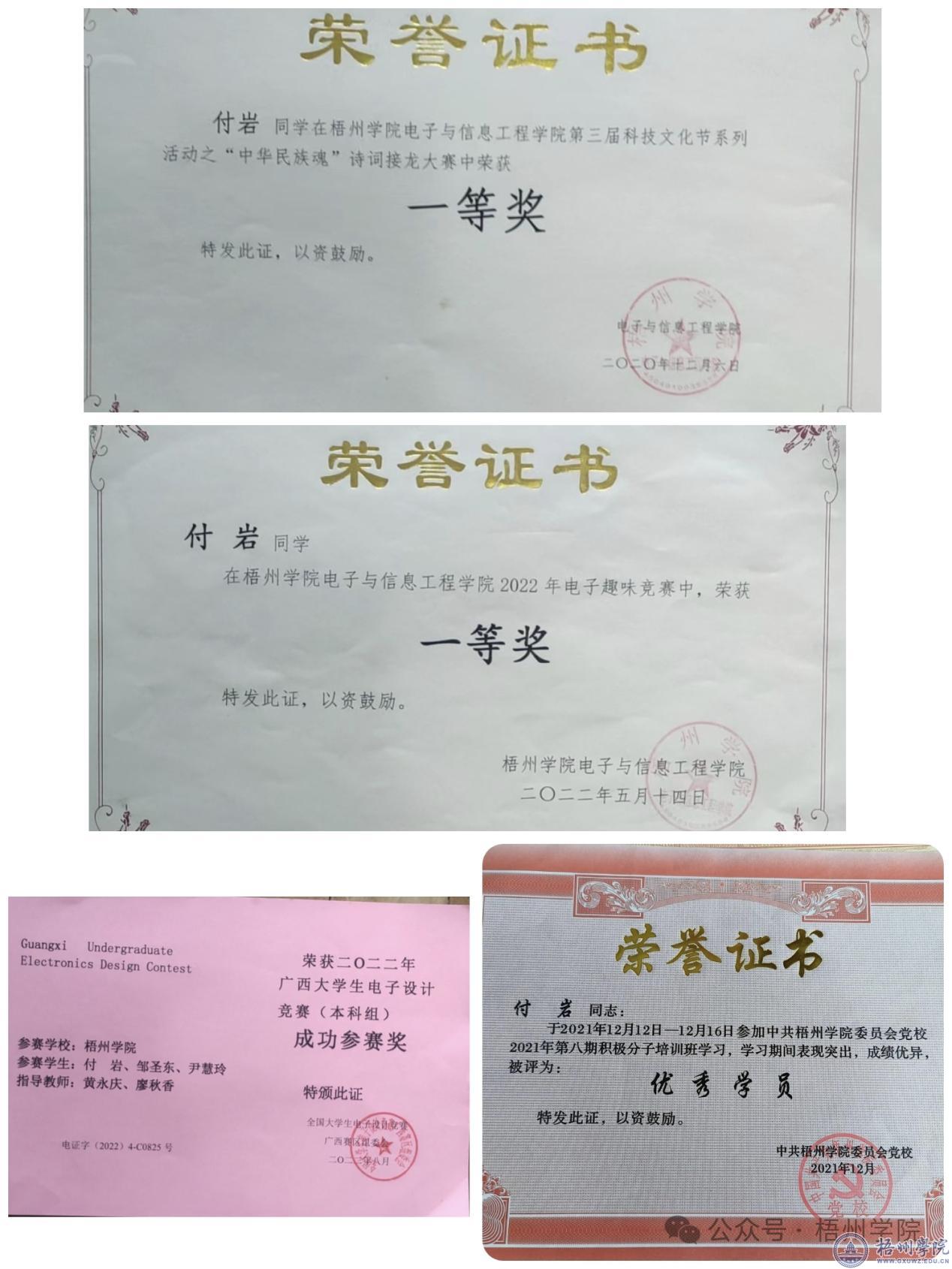 高考、渴望未来从事与制造业相关的工作,是付岩与梧州学院,与电子信息工程专业结缘的原因。