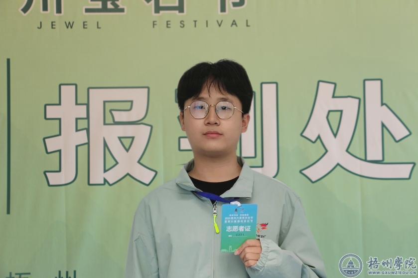 “宝石璀璨,耀闪梧州”。投身梧州二十一届宝石节志愿者工作,似踏上非凡旅程。我主要负责签到工作,在开场时,嘉宾问询如潮,我慌乱无措,好在迅速调整。接着,我耐心指引、麻利核对,助嘉宾顺利入场,收获诸多赞许。过程里结识了许多小伙伴,沟通应变能力也“拔节生长”。盛会落幕,可幕后工作的价值、助人的幸福却似种子,在心底扎根,催我于志愿路勇进。