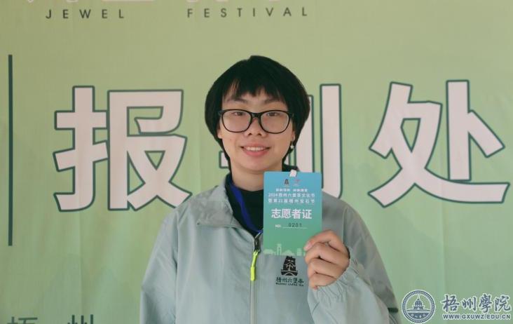 作为本次宝石节的志愿者之一,我深感荣幸。在这次活动中,我对梧州的宝石与六堡茶产业有了更为深入和细致的了解。在尽情领略“岭南瑰宝,茶韵梧州”的独特魅力时,我也始终以饱满的热情认真完成每一项志愿服务工作。我服务在基层、贡献于社会,非常荣幸为宝石节的顺利举行贡献了自己的一份力量!