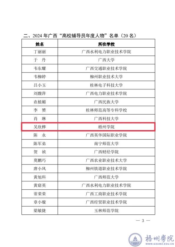 “饮水思源,不忘桑梓。”吴欣桦对这句话有着深刻的理解。在梧州学院度过四年的大学生活后,她的性格和人格都得到了锻炼和完善。当看到母校招聘辅导员的公告时,她毫不犹豫地选择了回归,用实际行动反哺母校,反哺故乡。从教师到辅导员,从聆听到讲述,从接收到传递,身份虽然转变,但教育初心从未改变。