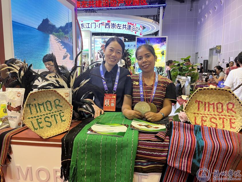 李翠萍(左一)协助东帝汶官员在展馆布展