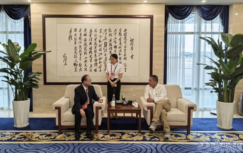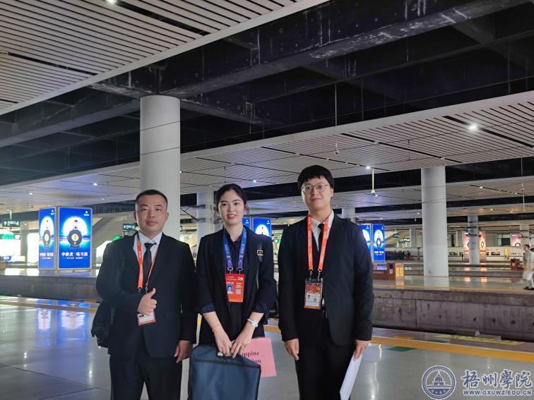 金秋九月,邕江河畔,新的盛会如期而至。在自治区党委、政府的正确领导下,第二十届中国-东盟博览会、中国-东盟商务与投资峰会(以下简称“两会”)于9月16日至19日在广西南宁成功举办。今年是建设更为紧密的中国—东盟命运共同体、共建“一带一路”倡议提出10周年,应“两会”指挥中心邀请,我校派出外国语学院秦莹、曾秦、唐秀文、李翠萍、李伟权五位教师承担重要外宾接待及会务筹备工作。参与两会相关外事接待工作,在二十多天的工作中,他们以良好的政治素养、专业的业务能力、无私奉献的精神和务实高效的作风,一心“译”意搭建中外沟通的桥梁,践行译者的使命与担当,助力两会顺利举办。